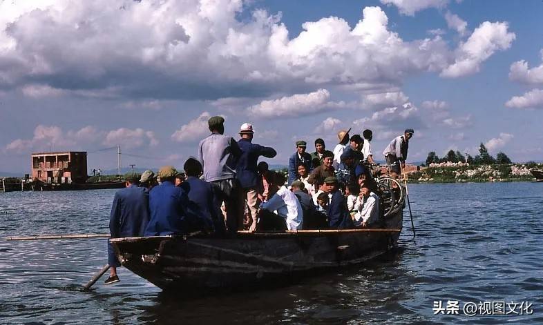 1983年,在滇池的渡口,一条小船正缓缓驶过水面。船上挤满了出行的市民和他们的自行车,船夫手握一根长长的竹竿,熟练地撑船前行。没有发动机的轰鸣,只有竹竿与水面轻轻接触的声响,映衬出当时纯朴的出行方式。