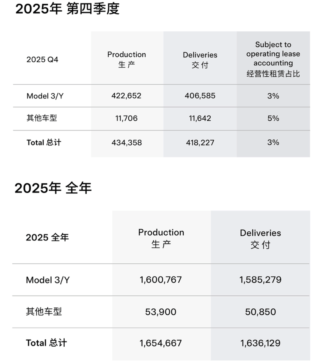 安博体育,安博体育APP下载,安博官方网站,安博官网,安博体育官网2026年1月2日,特斯拉发布2025年全球生产与交付报告。数据显示,特斯拉2025年全年全球范围内共计生产电动车约165.5万辆,交付约163.6万辆;储能产品全年装机量达46.7吉瓦时,同比增长48.7%。其中第四季度特斯拉全球生产电动车约43.4万辆,交付共41.8万辆;储能产品装机量达14.2吉瓦时,环比增长13%,创下季度装机量新纪录。