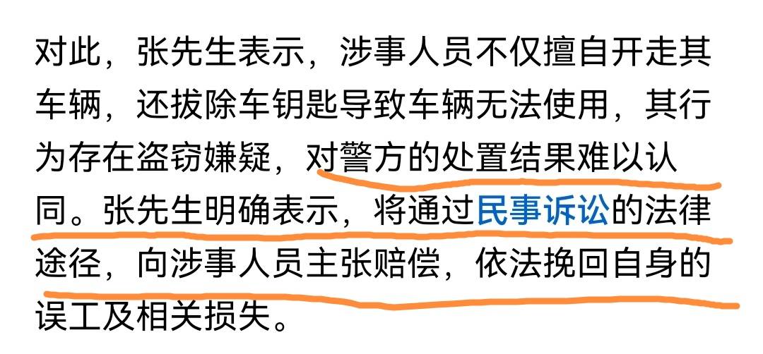 目前,张先生已经明确表示,对警方的处置结果难以认同,接下来会通过民事诉讼的方式起诉该男子,依法挽回自己的损失。“车子是我谋生的工具,他一句话就把我的工作搅乱了,还造成了实实在在的损失,不能就这么算了。” 张先生的态度很坚决,也得到了不少网友的支持。