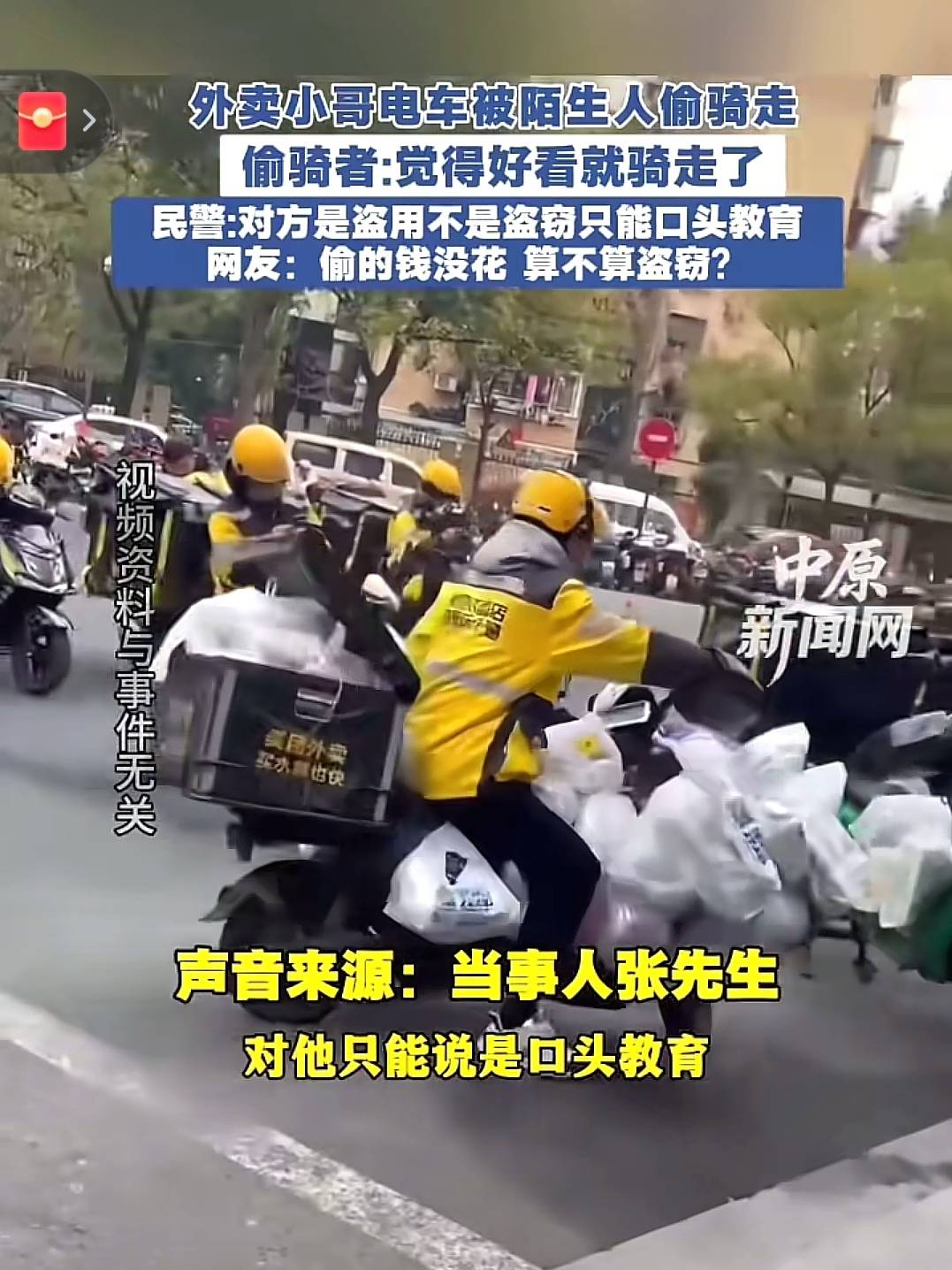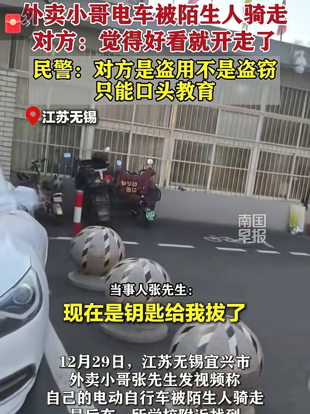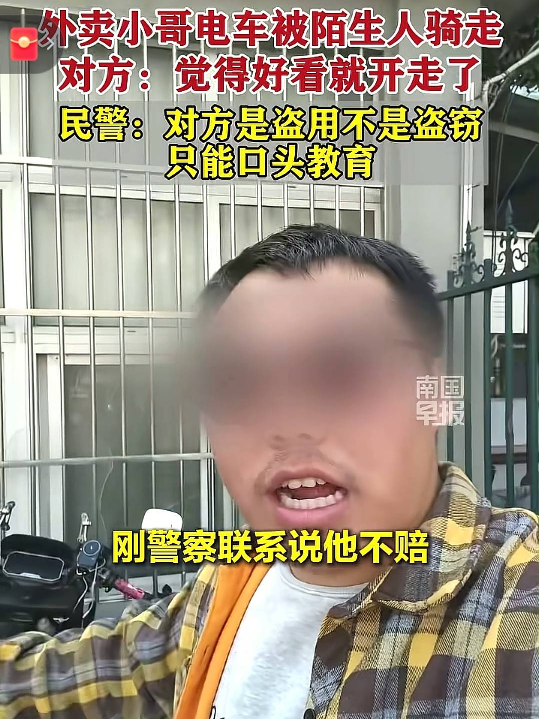 耽误了大半天,订单超时被罚,车子也没法正常使用,张先生又气又急,立刻报了警。警方通过监控排查,很快锁定了骑走电动车的男子。可让人没想到的是,面对民警的询问,该男子竟然一脸无辜地表示:“我没偷车啊,就是觉得他这外卖车挺好看的,想骑着兜一圈,根本没打算占为己有。”