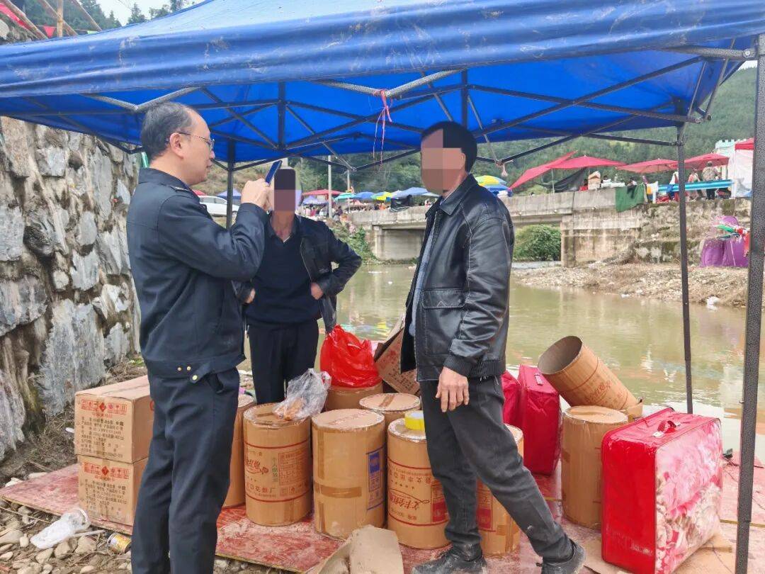 此前,有群众向从江县应急管理部门反映,谷坪乡一斗牛塘存在非法销售烟花爆竹行为。接报后,执法人员迅速赶赴现场核查,发现当事人潘某在未依法取得《烟花爆竹经营(零售)许可证》的情况下,擅自在村道旁设立摊点销售烟花爆竹。该摊点未配备灭火器材、未设置安全警示标识,88盘爆竹随意堆放于简易棚内,周边人、车流动频繁,安全风险极高。
