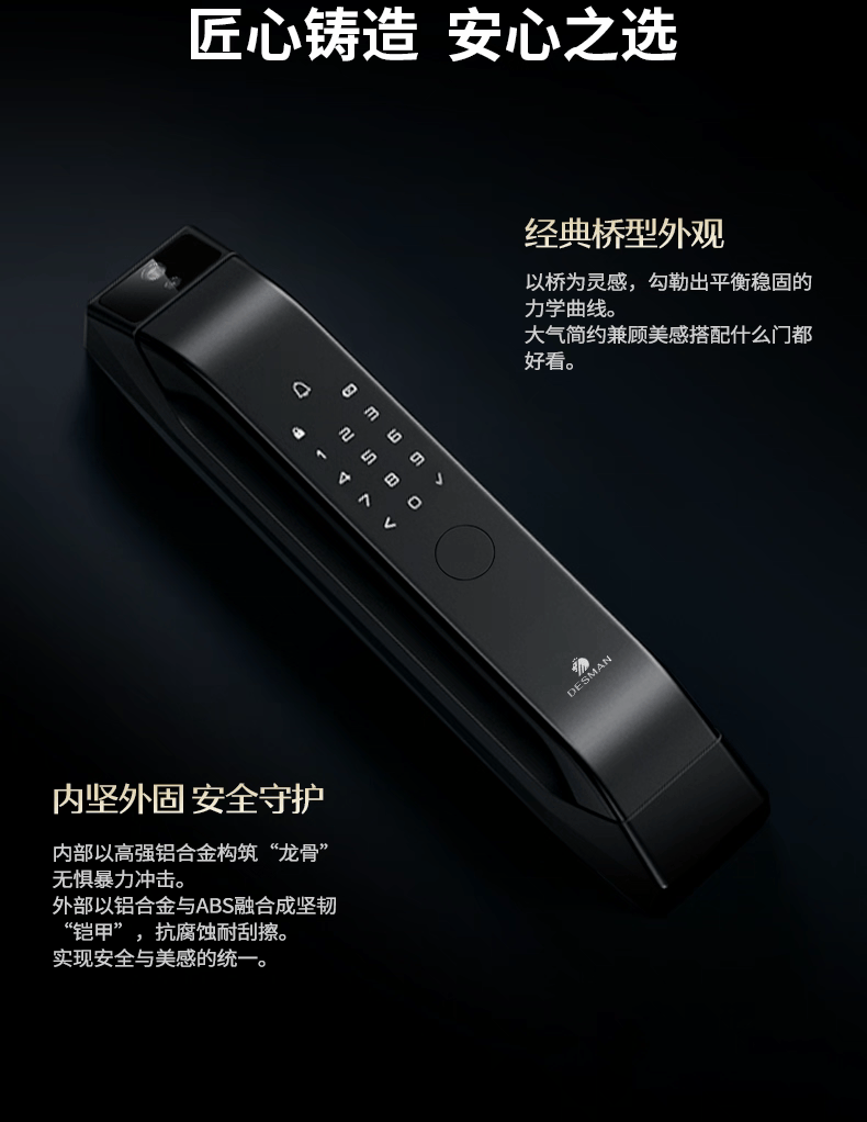 全自动锁体:识别成功后自动收回锁舌,推门即入,关门后自动上锁,无需手动反锁。