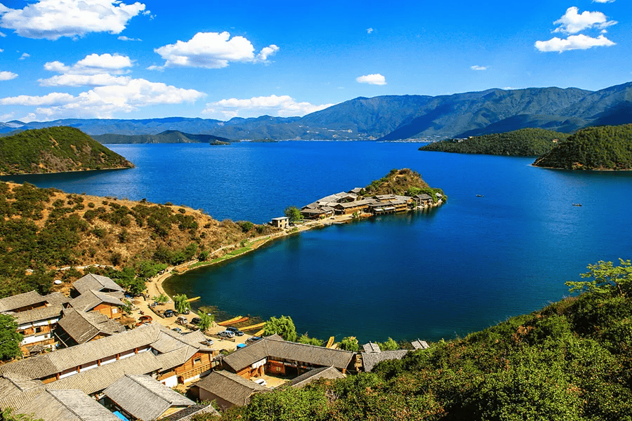 游玩后继续行车,约13点自由午餐。14点抵达“高原明珠”【泸沽湖】,首先映入眼帘的是【泸沽湖全景】。每年6-8月,泸沽湖里的水性杨花盛开,花朵如冰雪般净白,有风拂过又摇摇欲坠,宛若人间仙境。